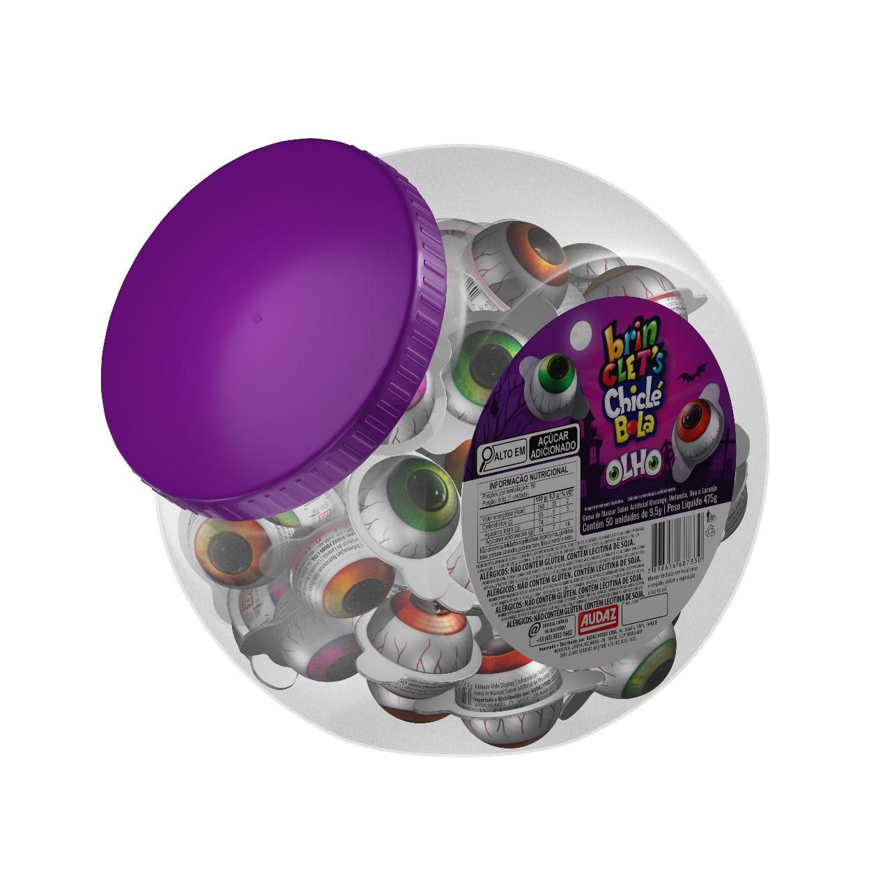 chicle brinclets pote bola olho - 50un